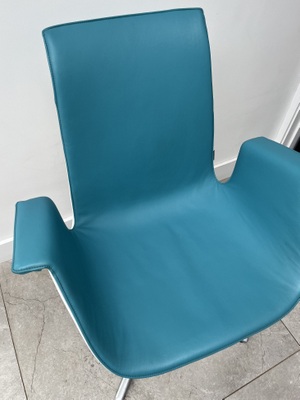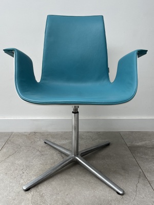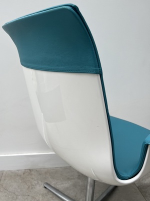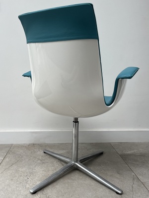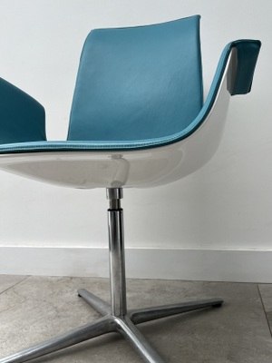 Originally designed in 1967 by Fabricius and Kastholm the FK bucket chair (also known as the bird chair) is one of the iconic, instantly recognisable, designs from the mid 20th century. The chair features turquoise leaher upholstery with a white coated plastic shell on a 4 star, aluminium swivel base with glides. < back to furniture | ![]() < > |